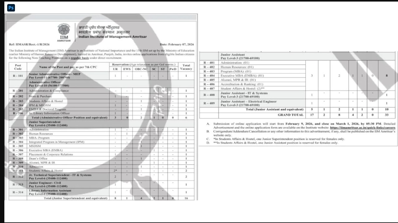 IIM Amritsar Recruitment 2026: 33 Non-Teaching Vacancies – Apply Now